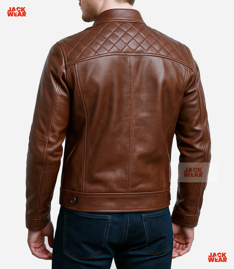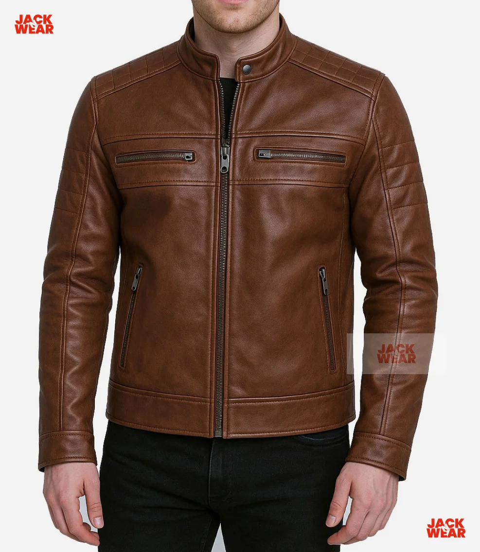 Men’s Brown Leather Jacket with Clean Classic Design