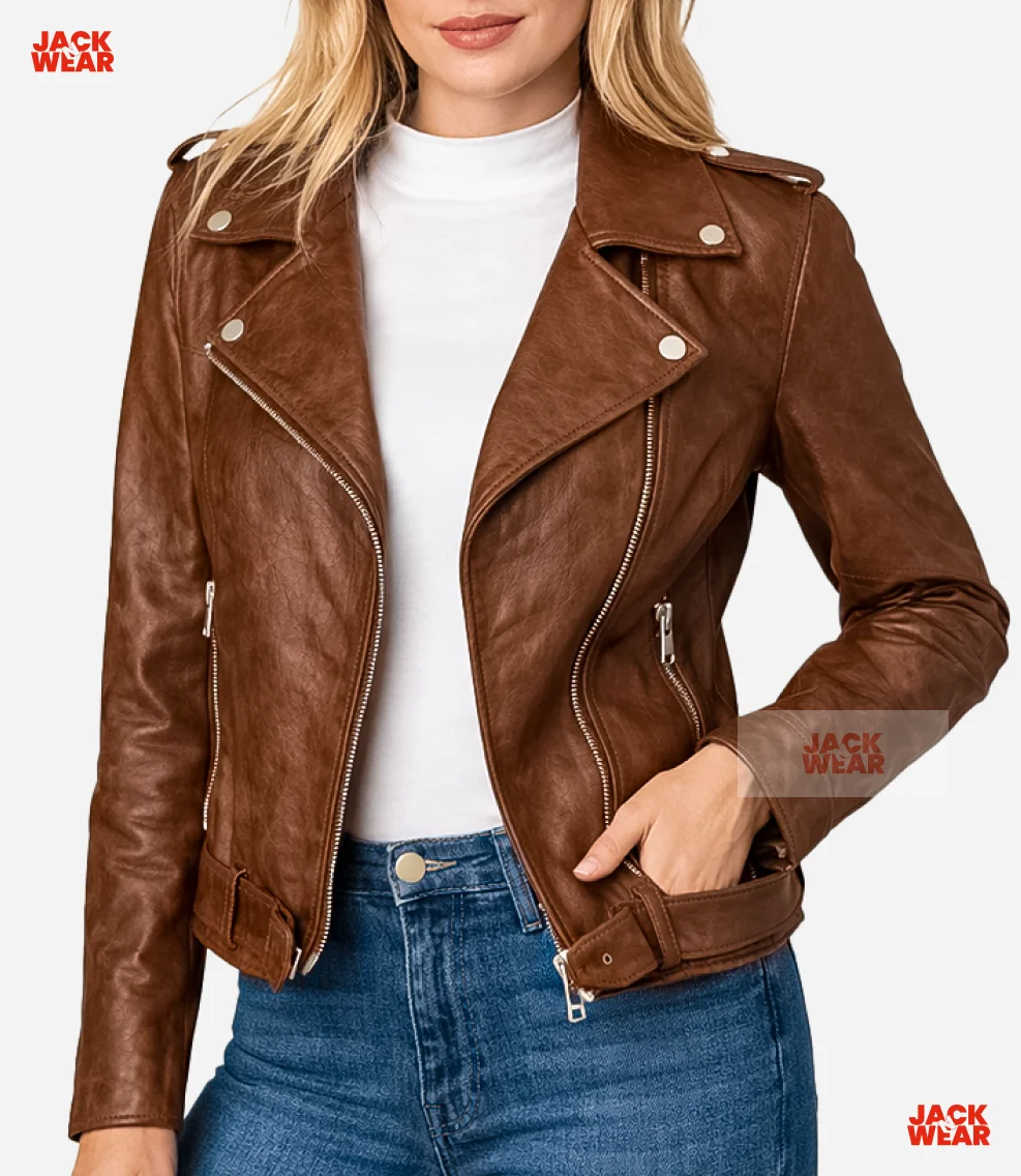 Women’s Brown Biker Style Leather Jacket